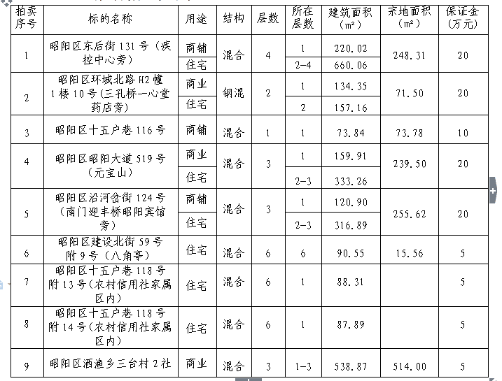 受云南昭通昭陽農(nóng)村商業(yè)銀行股份有限公司委托,公開拍賣昭陽農(nóng)村商業(yè)銀行閑置資產(chǎn)9宗。相關(guān)事項如下: